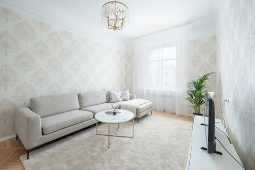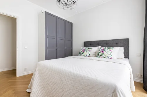 This bright and cozy apartment is tastefully furnished and offers a home in the very center of the city. The original herringbone wooden floors and calm range of colors used throughout the interior give the apartment a modern, warm and homely look. The apartment has living room, bedroom, kitchen, hallway, bathroom and toilet.